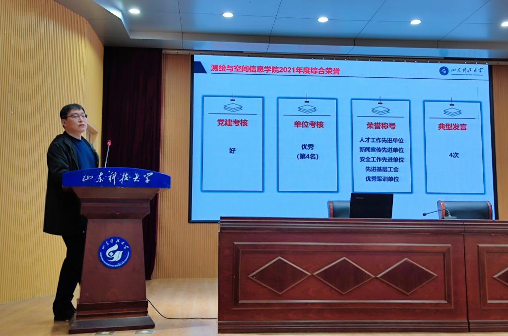 会上,秦昌盛对学院2021年重点工作进行了梳理和回顾,对全院教职工在2021年度学院事业发展过程中体现出的“讲大局、勇担当、讲团结、重务实”的优秀作风品质进行了总结。他指出,在看到成绩的同时,也要清醒认识到当前学院在未来所面临的机遇和挑战。