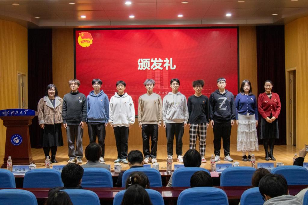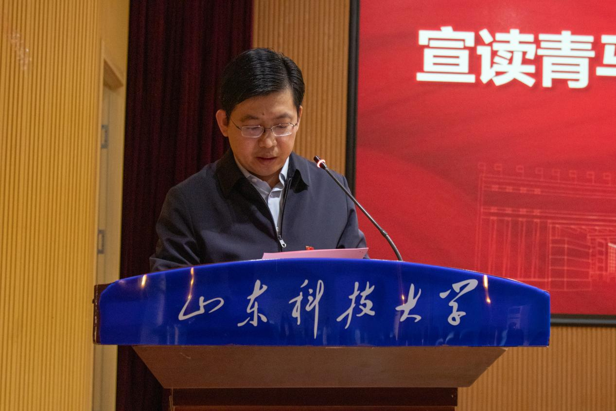 仪式在庄严的国歌声中拉开帷幕。化工学院辅导员孙梦柯宣读《中国共产主义青年团章程》中有关团员义务和权利的条款。耿倩宣读新发展团员名单,并向新团员代表颁发团员证。易凡、马韶霞为新发展团员代表佩戴团徽。38名新团员在领誓人王宏力的带领下,面向团旗庄严宣誓,活动现场全体团员重温入团誓词,他们用最洪亮的声音喊出自己的名字,表达出自己勇担时代重任的决心。新团员代表付宇轩和优秀团员代表王奕苏分别发言。随后,材料学院党委副书记兼副院长李建楠宣读青马工程基础班方案,并详细介绍培训内容和目标。