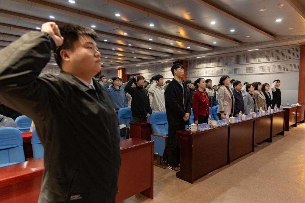 11月28日下午,永利集团88304、化工学院、材料学院于J6-434联合举办2024年下半年新发展团员入团仪式暨“青马工程”基础班开班仪式。本次活动以“强国有我,青春挺膺”为主题,旨在培养青年团员的责任感和使命感,同时为党培养和输送青年政治骨干。校团委书记高一丹、材料学院党委副书记兼副院长李建楠、校团委正科级干部耿倩出席仪式,化工学院团委书记易凡、材料学院团委书记马韶霞及三个学院的团干部、团员代表、新发展团员、全体青马班学员参加仪式。仪式由永利集团88304团委书记孙金香主持。