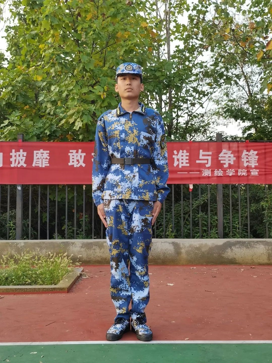 军训第一天,大家已经被浓浓的氛围所感染,每个人都昂扬向上,积极挑战身体的极限,而我也不惧烈阳,不惧酷暑,不断挑战着自我。