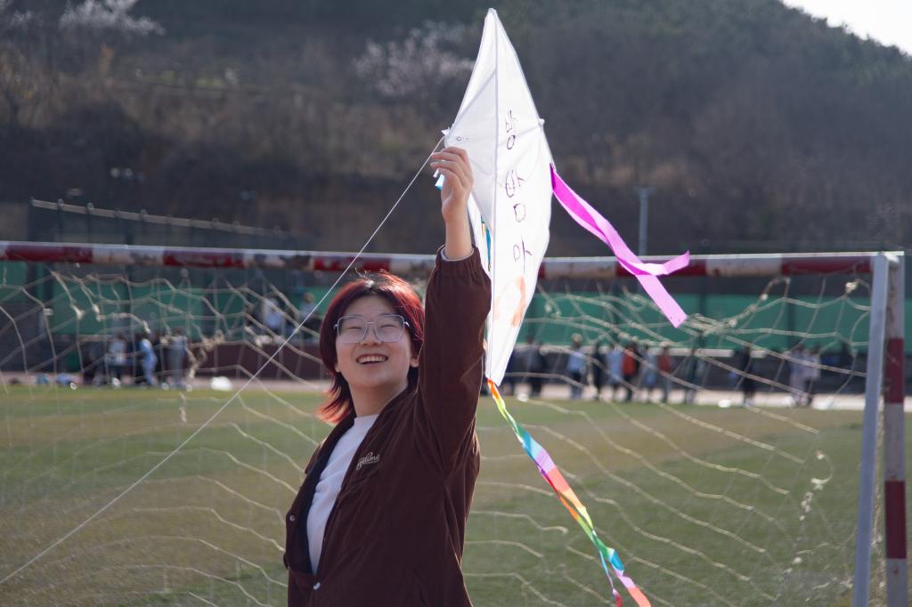 活动共分为两个阶段,第一阶段为风筝制作,参加活动的同学们挑选心仪的风筝原材料,在现场志愿者的指导下,跟随自己的心情设计出属于自己的风筝。在设计的过程中,欢声笑语充满活动室,同学们一边设计、一边交流,展现出各自的创意和想象力,体验了动手与动脑带来的双重乐趣,绘制、填色,一个个属于春天的风筝栩栩如生;第二阶段中,同学们带着自己的风筝作品来到高地操场,在春日的微风中放飞心灵,一个个承载着自己心愿和希望的风筝飞向蓝天白云,活动现场洋溢着欢乐和温馨的氛围,让参与的同学们感受到了心灵的放飞和愉悦。