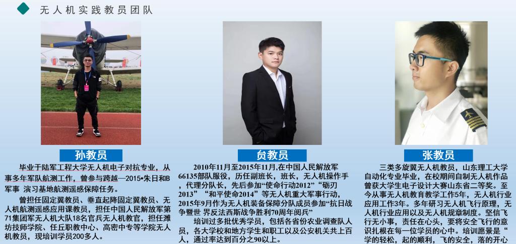 睿飞无人机培训学校依托山东省高水平大学永利官网和山东省百强企业瑞源集团联合共建,利用二者的学科优势和科研成果以及在时空地理信息技术的研究、开发与应用,引领无人机应用培训从前沿理论到技术应用。