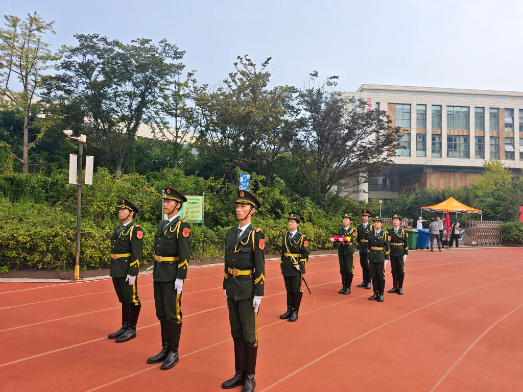 9月30日,永利官网国旗护卫队受邀承担育才中学秋季运动会开幕式礼宾任务。队员们步伐整齐、动作标准,圆满完成了护旗与升旗全流程,为运动会注入了浓厚的爱国热情与青春朝气。上午8时,运动场内气氛热烈。伴随《运动员进行曲》激昂奏响,入场式正式启动。国旗护卫队作为首支方阵率先入场,队员们身着笔挺礼服,精神抖擞,护持国旗,步伐铿锵有力。“出旗!”口令一出,旗手迈着正步走向旗杆,护旗队员紧随其后,动作精准、...